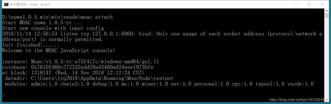 D:\nuwa1.0.5.win\win\vnode>moac attach