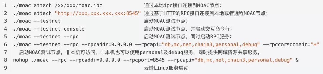 2、测试网安装的节点,每次执行moac命令后面都需要加上--testnet;