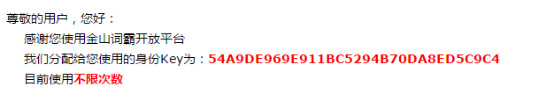 (3)点击提交按钮,你所填写的邮箱就会收到一个邮件通知,点开后就可以获取到key了。