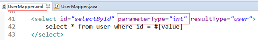 - 映射文件的输入参数类型parameterType和接口的参数类型一致