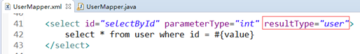 - parameterType:输入参数类型(java基本类型、pojo、HashMap)