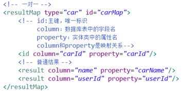 - 一对一:如果字段名和属性名一致,可以省略一致的属性