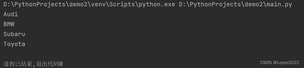 cars = ['audi', 'bmw', 'subaru', 'toyota']