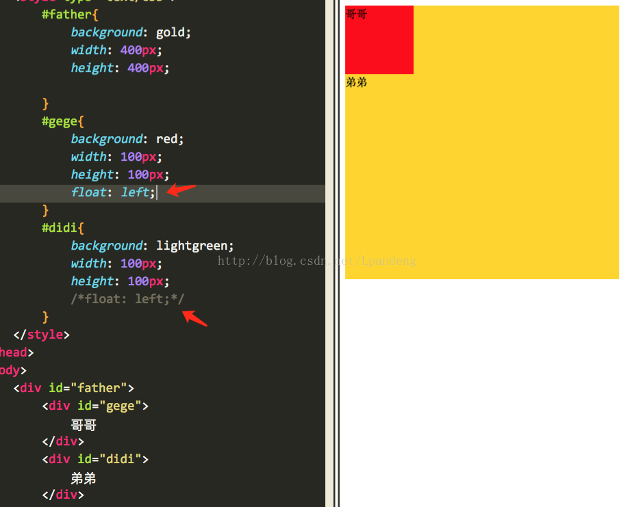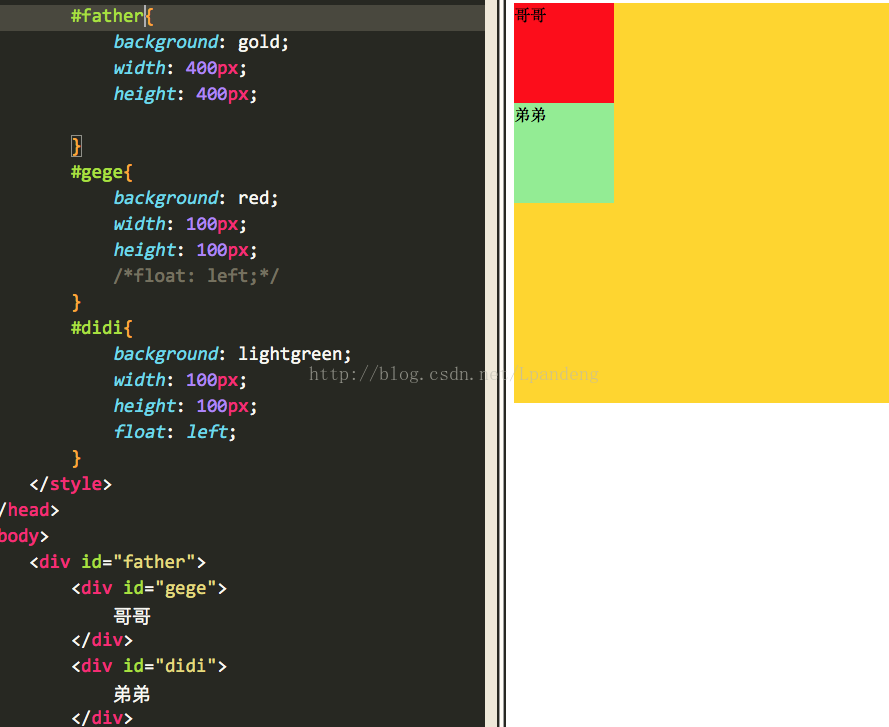 2弟弟浮动要看哥哥(哥哥不浮动 / 哥哥浮动)。