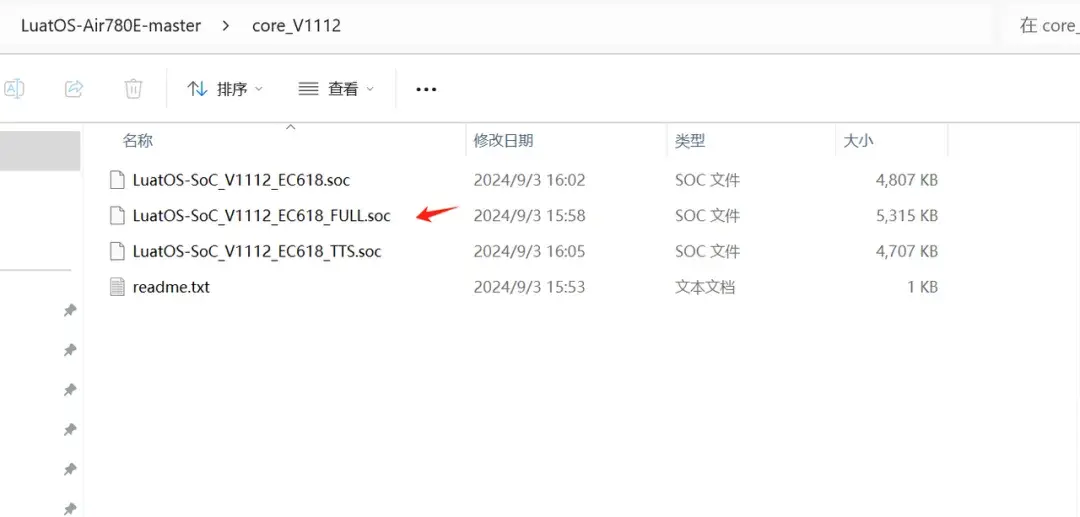 Air780E 的底层固件在 Luatools 解压后目录的 LuatOS-SoC_V1112_EC618_FULL.soc