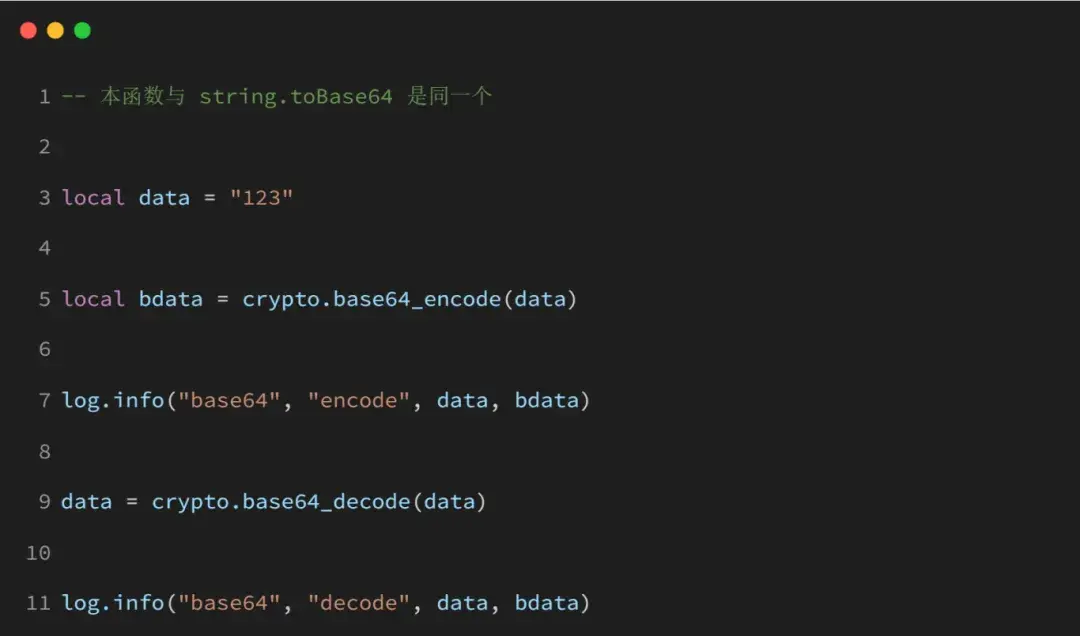 参考以下示例,本库有专属 demo,复制链接查看 crypto 的 demo 例子:(https://gitee.com/openLuat/LuatOS-Air780E/tree/master/demo/crypto)