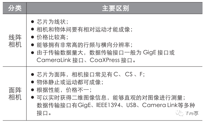 ②按照传感器的结构特性:可以分为线阵相机、面阵相机;