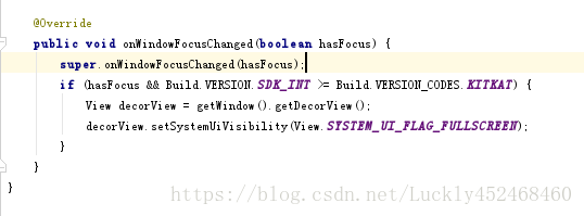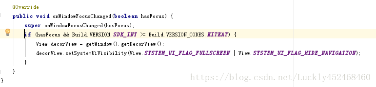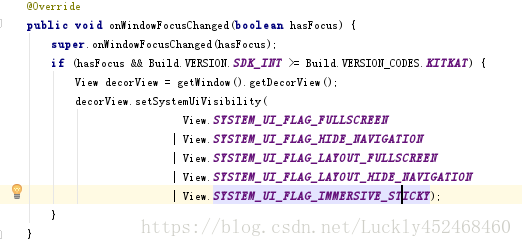 3.接下来的都要涉及到沉浸式的相关内容了,官方给出了一个非常方便的API:setSystemUiVisibility(int visibility):设置系统UI可见性,这个方法就可以完美得实现沉浸式效果!其中参数主要用到以下几个: