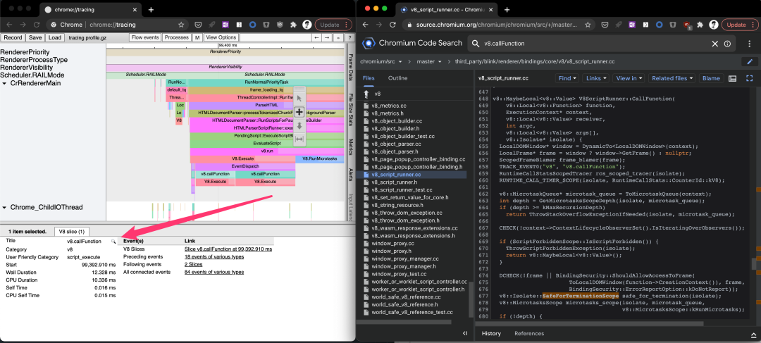 TRACE_EVENT0("v8", "v8.callFunction"); // 这就是我们在 tracing 中看到的 v8.callFunction