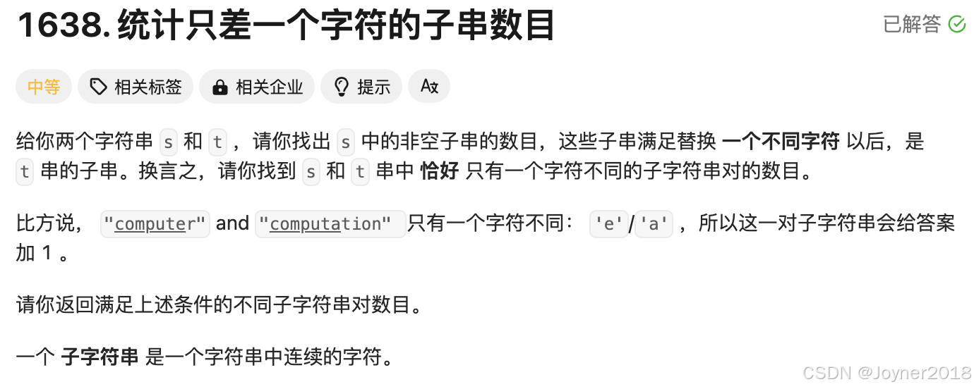 1638. 统计只差一个字符的子串数目 - 力扣(LeetCode)