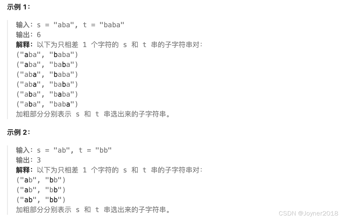 print(countSubstrings(s, t)) # 输出: 6