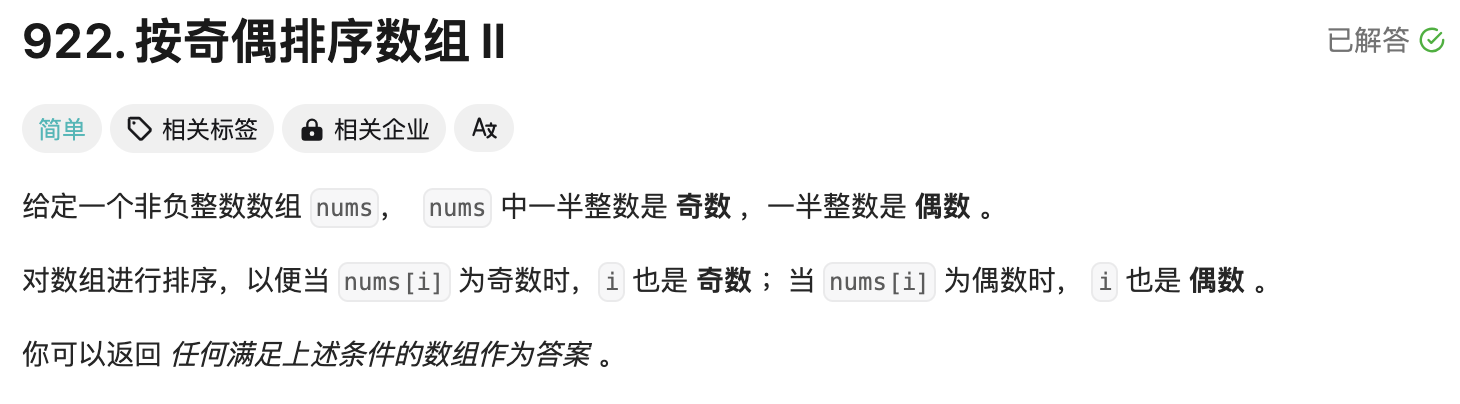 922. 按奇偶排序数组 II - 力扣(LeetCode)
