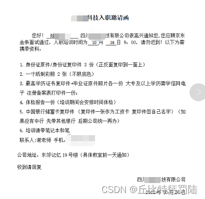 当这么多天以来,拿到offer的时候,高兴和失落一下子涌到了我的脑海里!高兴是那么多天,还是能拿到一个公司的offer的,失落是,我在想要是能拿到本行的工作岗位的offer,那该多好啊!当然后面也是没有去,跟家里人商量了一下,还是再等等机会吧!毕竟毕业以来到外省的第一份工作,还是谨慎一点为好!