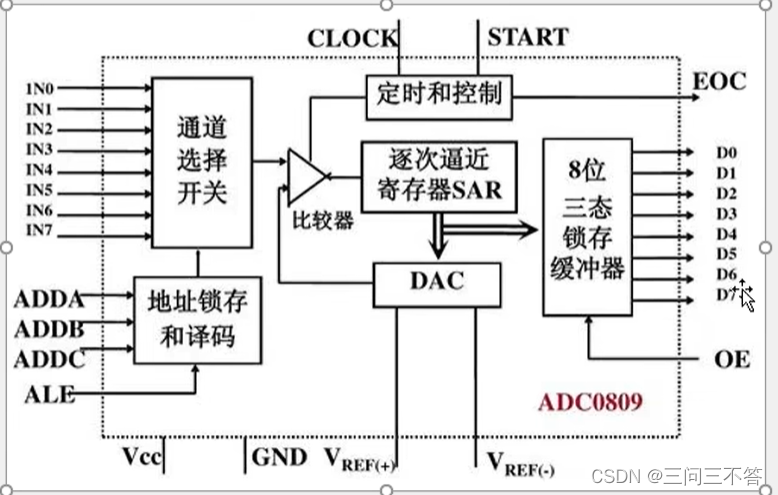 第一次比较的时候输出一半,也就是128,比较谁大谁小,如果DAC电压大了,第二次比较的时候,就在给64,如果还大,第三次给32,如果这次小了,第四次那么就给32-64之间的值。如果用二进制来表示的话这些数据正好二进制是每一位的位权,那么这个按段的过程相当于就是对二进制从高位到低位依次判断是1还是0的过程,对于8位的ADC,依次判断8次就能找到未知电压的编码了。ADC有一个内置自校准模式。12位逐次逼近型ADC(它的表示范围就是0~2^(12-1)——> 0~4095),1us转换时间(对应频率1MHz)