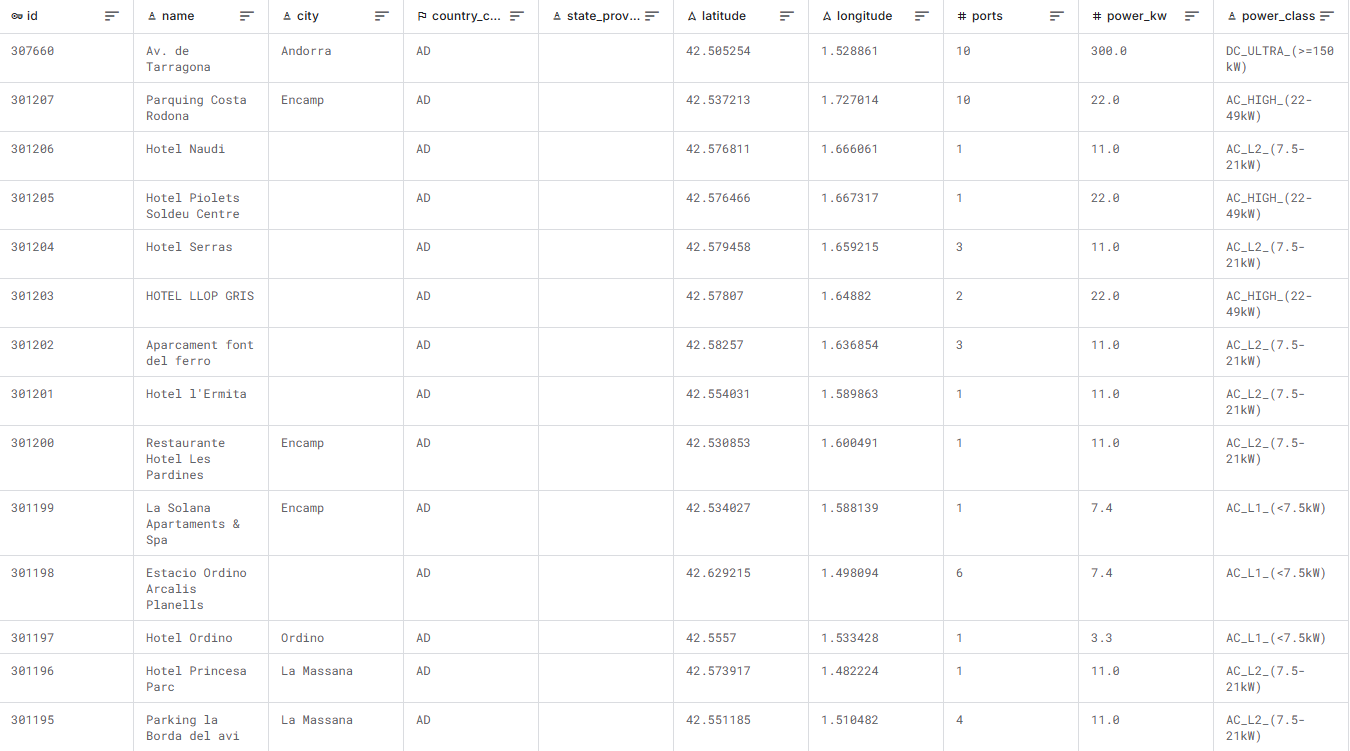 | id | name | city | country_code | latitude | longitude | ports | power_kw | power_class | is_fast_dc | region | power_label |