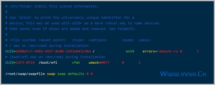 // 编辑`/etc/fstab`文件