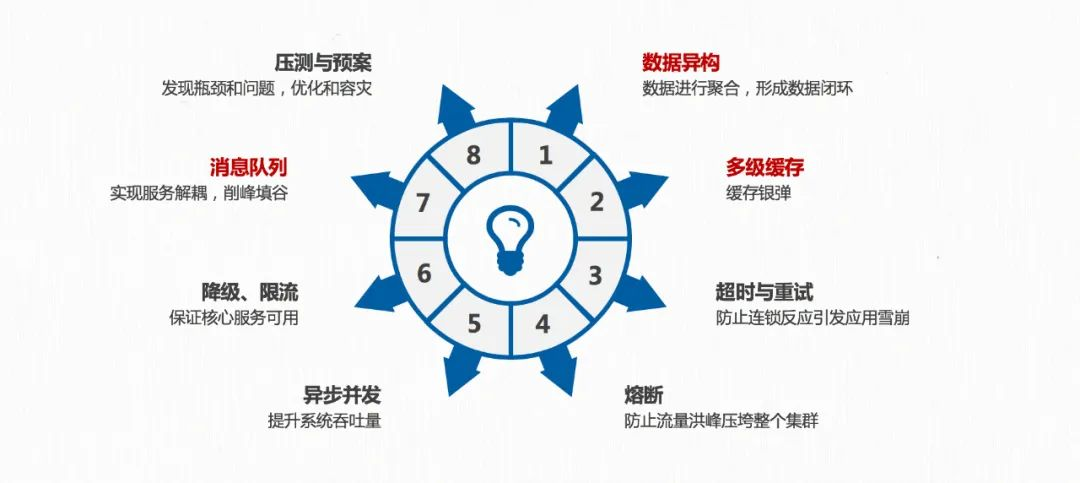 服务拆分并服务化之后,是不是就完事了,不!真正的微服务实践才刚刚开始,简单提供了一个接口,是没有意义的,它必须具备高可用、高性能、高并发的三高特性,尤以高可用最为重要。保障服务高可用的方法有很多,如数据异构、多级缓存、超时与重试、熔断、异步并发、降级、限流、消息队列、压测与预案等。