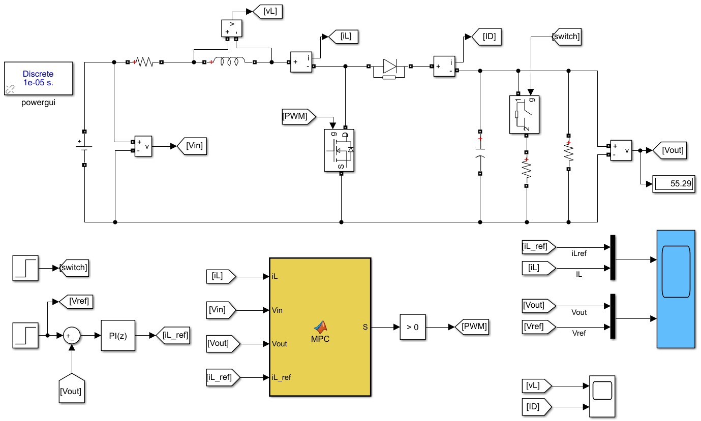 单相Boost升压变换器PI+模型预测控制仿真,电压外环采用PI,电感电流内环采用mpc。