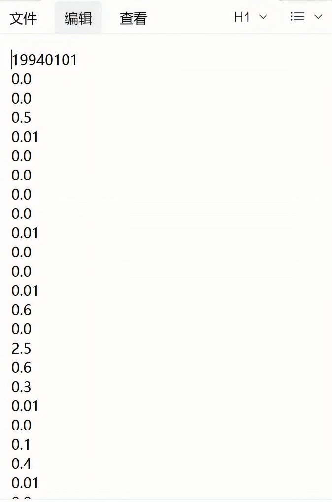 以降水某一站点为例,形成的该站点的气象数据文件内容如下: