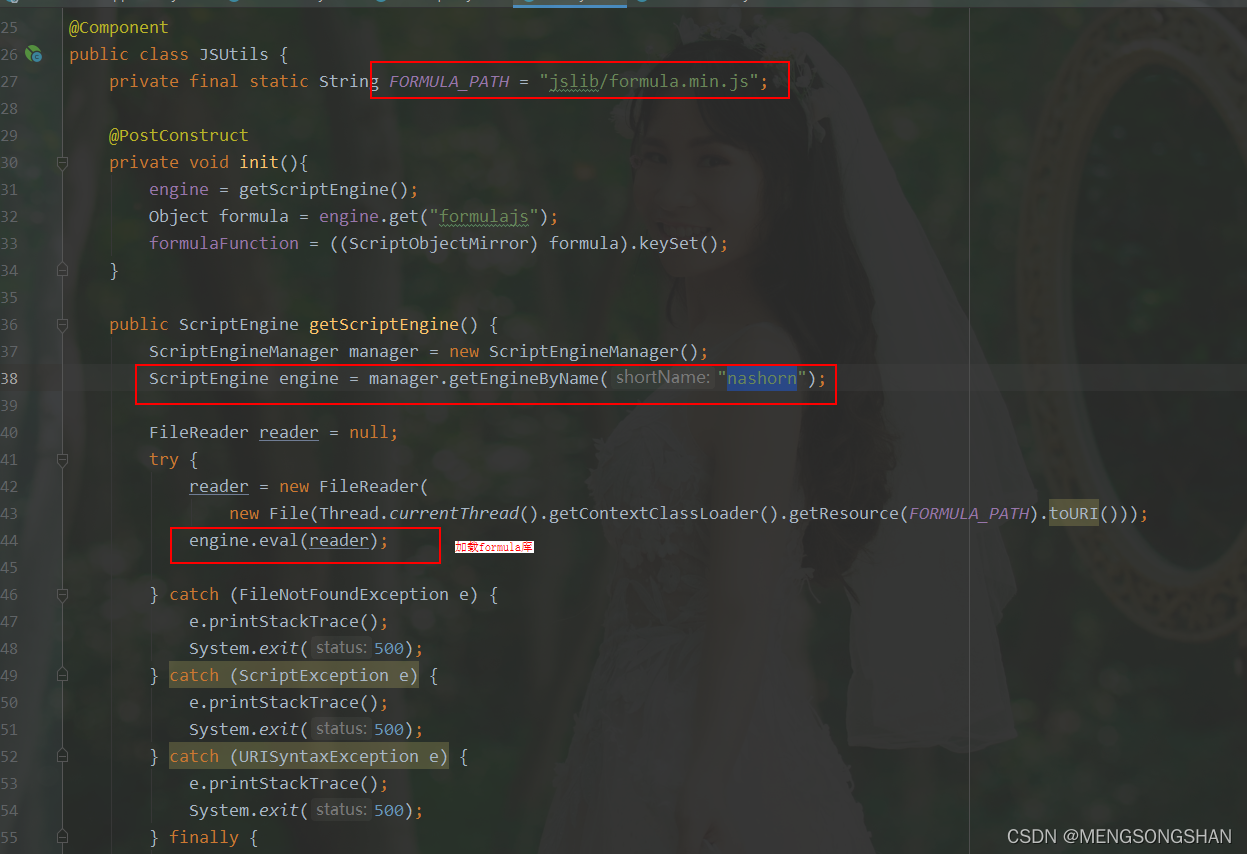 本文介绍了如何在服务类中利用Nashorn JavaScript引擎加载并执行formula.js文件。通过这个过程,可以理解JavaScript在Java环境中的运行机制,并展示了在实际应用中结合两种语言的能力。