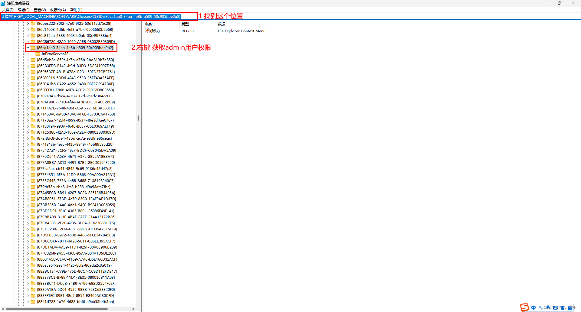 找到这个位置(HKEY_LOCAL_MACHINE\SOFTWARE\Classes\CLSID\{86ca1aa0-34aa-4e8b-a509-50c905bae2a2})