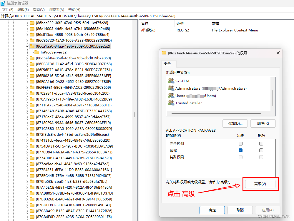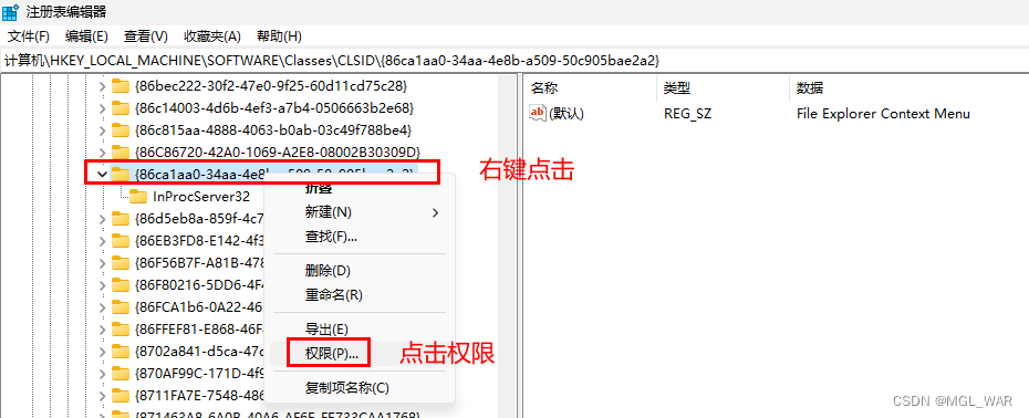 右键({86ca1aa0-34aa-4e8b-a509-50c905bae2a2}) 点击 权限