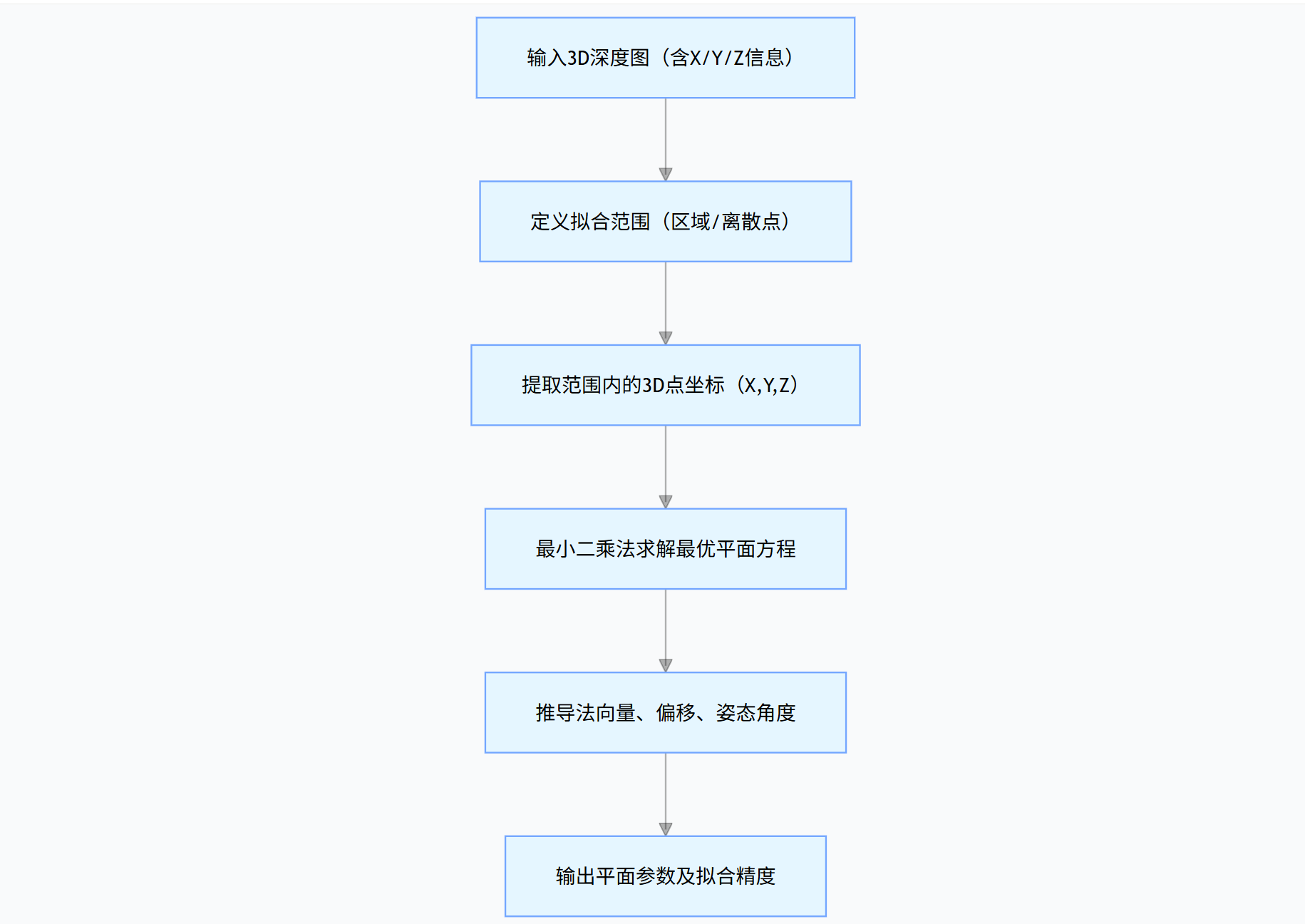 在工业 3D 视觉检测中,该工具的配置核心是 “匹配目标特性选择拟合方式、通过掩膜 / 领域功能排除干扰、结合可视化调试验证参数”,结合后续工具可实现 3D 工件的姿态校准、平面度评估、抓取定位等功能,是 3C 电子、汽车零部件等行业 3D 视觉方案的基础组件。