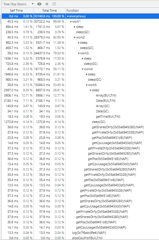 做精确分析时建议使用VSCode进行解析,直接用VSCode打开.cpuprofile文件即可。