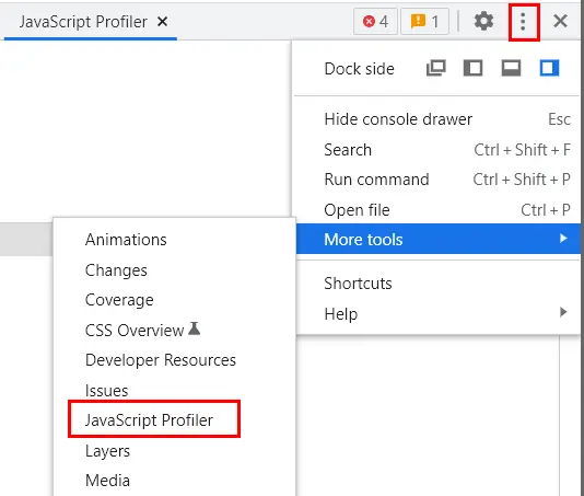 图3 JavaScript Profiler工具入口