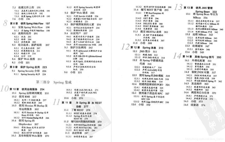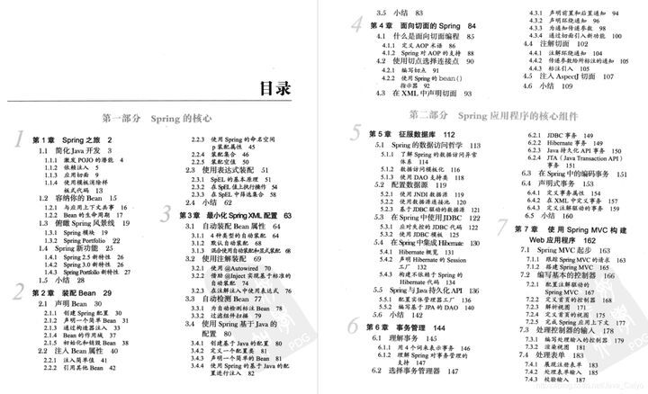 本笔记从核心的 Spring、Spring 应用程序的核心组件、Spring 集成 3 个方面,由浅入深、由易到难地对 Spring 展开了系统的讲解,包括 Spring 之旅、装配 Bean、最小化 Spring XML 配置、面向切面的 Spring、征服数据库、事务管理、使用 Spring MVC 构建 Web 应用程序、使用 Spring Web Flow、保护 Spring 应用、使用远程服务、为 Spring 添加 REST 功能、Spring 消息、使用 JMX 管理 Spring Bean 以及其他 Spring 技巧等内容。
