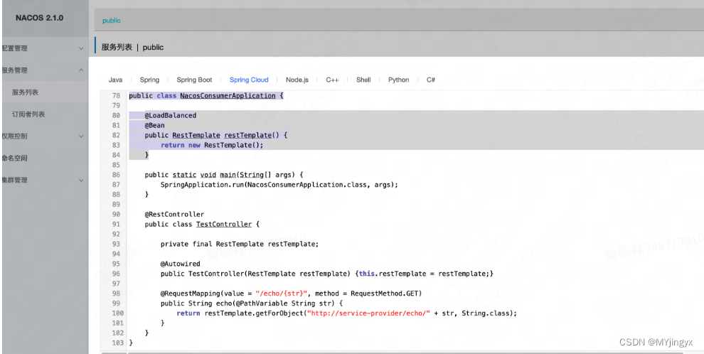 配置管理:Nacos 可以作为统一的配置中心,管理应用程序的配置信息。它支持动态配置更新,可以在运行时动态修改配置,并且能够实现配置的推送,使得配置的变更能够及时生效。
