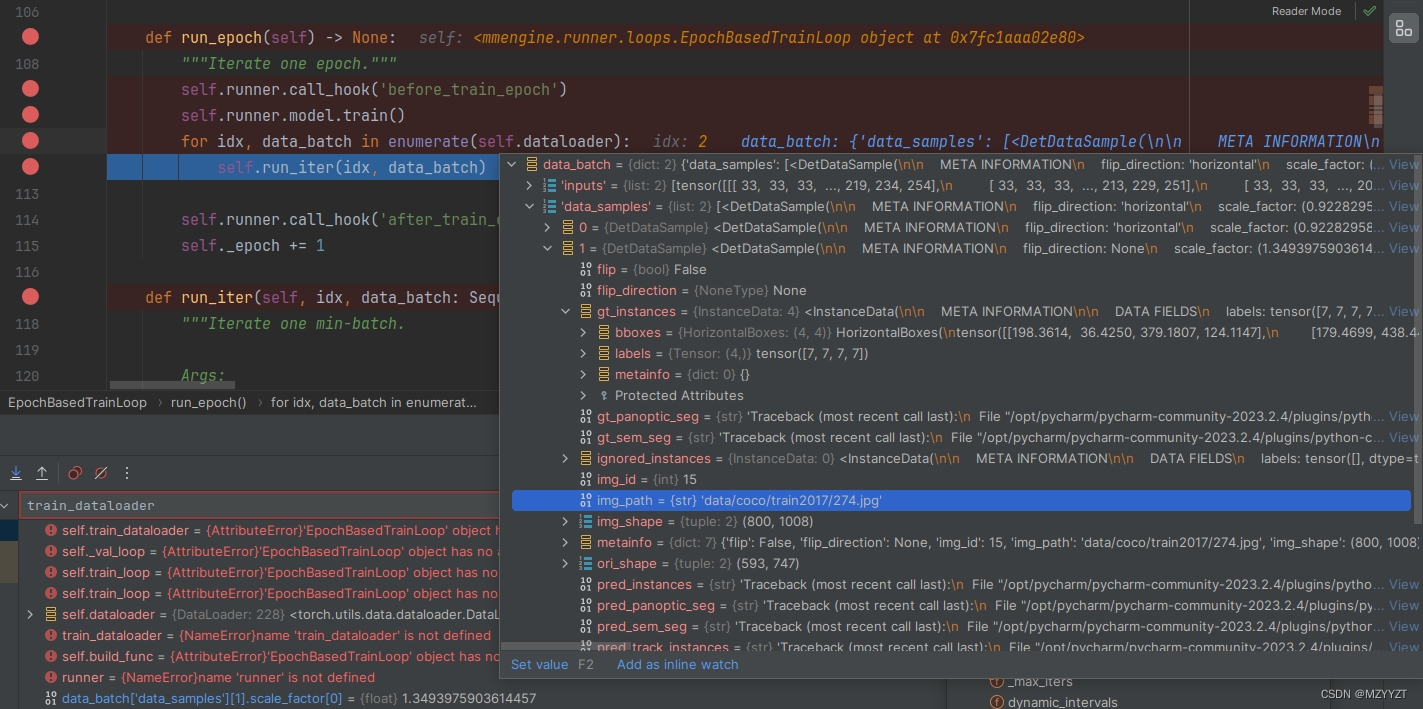MMdetection3.0 问题 3、训练集455张,batch_size=2,所以,train dataloader的长度应该是455/2=228(取整)1、如下图,第一张图是Debug调试打印结果,符合正常结果。2、如下图,第二张图是RUN打印结果,就很扯蛋,train_dataloader长度就是成了28.MMdetection3.0 debug调试 和 RUN 结果竟然不一样。2、在调试窗口和训练窗口打印观察 train dataloader的长度。有没有路过的大佬遇到这个问题的?1、调试和RUN调用的同一个配置文件。