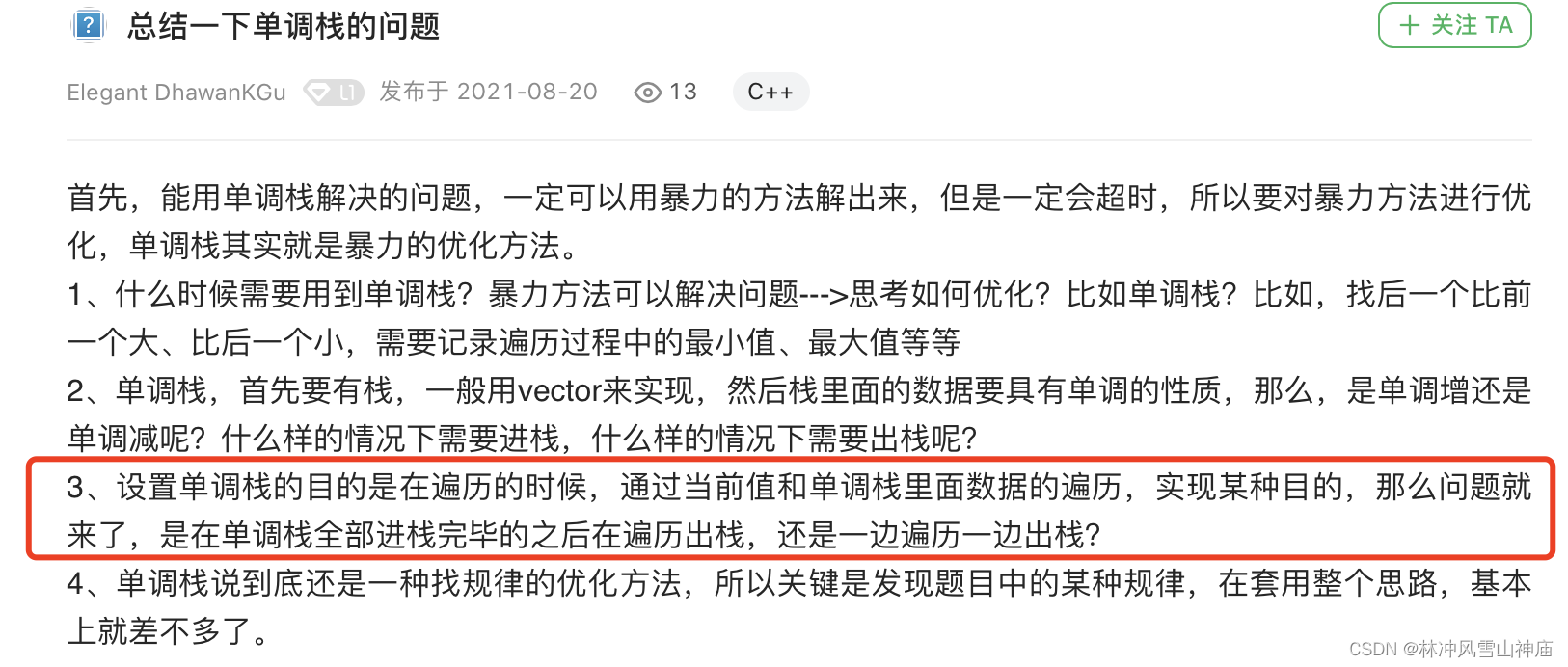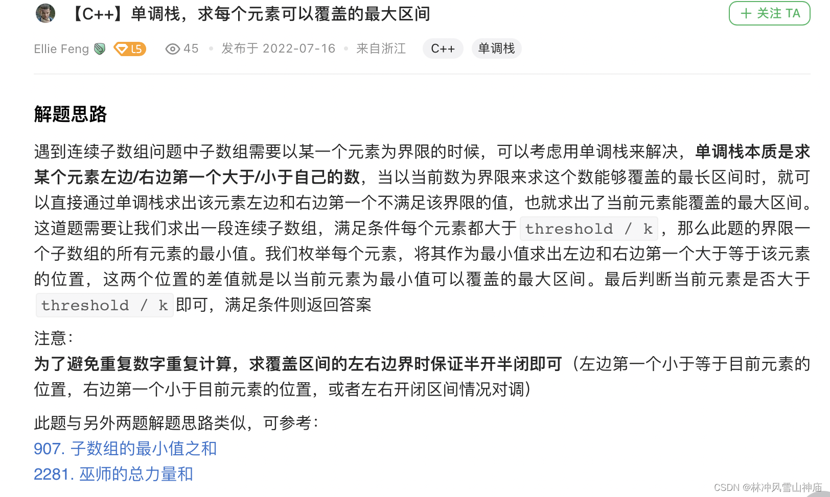 为什么862用单调递增队列?因为根据前缀和性质,用队列尾减去队列前,得到的就是这中间值之和,本质上是比较窗口的两端元素。