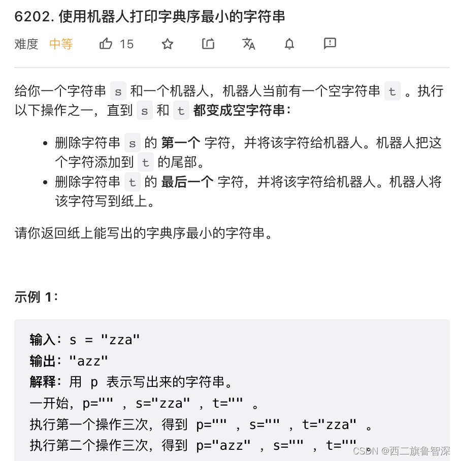 6202. 使用机器人打印字典序最小的字符串