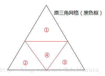 [1] 生成边点(E-顶点):按照下述的策略在原有三角形的边上新增一个点(即边点,E-顶点),将原有三角形1分为4。