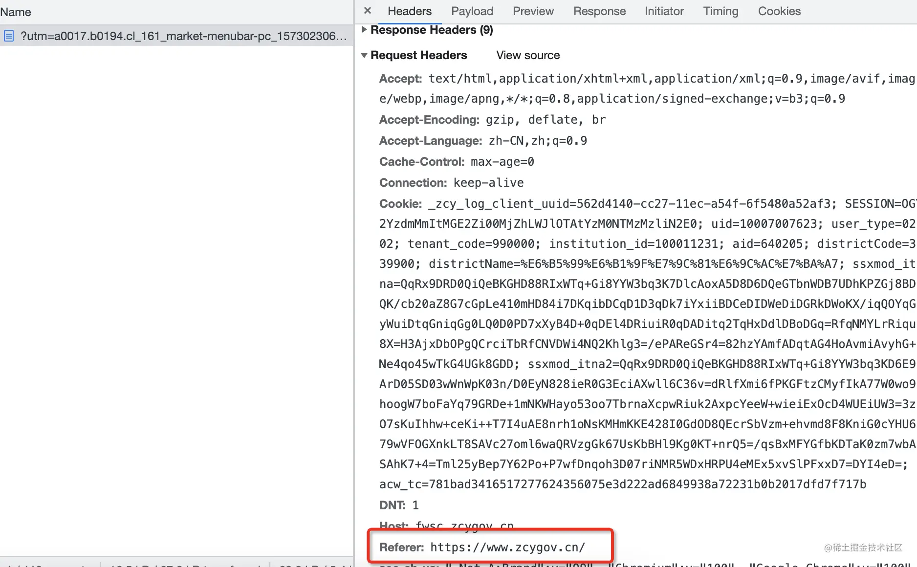 HTTP Referer 是 HTTP 表头的一个字段,用来表示当前网页是来源于哪里,采用的格式是 URL。我们通过这个 HTTP Referer,可以查到访客的来源。