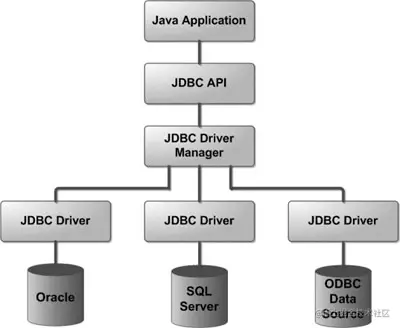 JDBC 制定了一套和数据库进行交互的标准,数据库厂商提供这套标准的实现,这样就可以通过统一的 JDBC 接口来连接各种不同的数据库。可以说 JDBC 的作用是屏蔽了底层数据库的差异,使得用户按照 JDBC 写的代码可以在各种不同的数据库上进行执行。那么这是如何实现的呢?如下图所示: