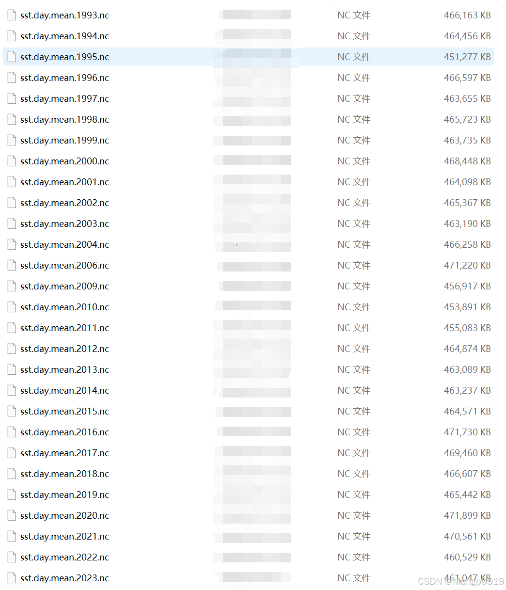 本文选取的数据为美国国家海洋和大气管理局的最佳插值海平面温度(OISST)日分辨率海温数据集(V2)。该数据集使用了改进的高分辨率雷达(AVHRR)红外卫星海温资料以及浮标和船舶等原位观测资料。日平均海温数据的空间分辨率为0.25°×0.25°,时间跨度为1981年6月至2024年5月。由于0.25的分辨率对于我的课题太精细了所以我的数据是已经经过线性插值处理过的,分辨率为1°×1°。