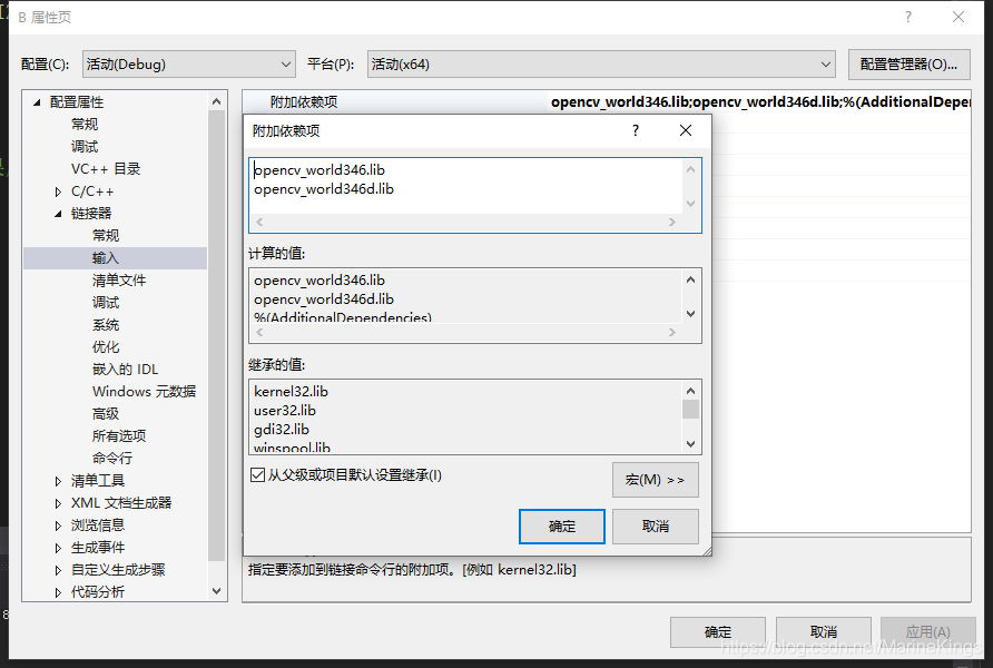 右键项目属性,链接器,输入,附加依赖项,输入对应的lib版本,比如我的版本是3.46,上面就是346.