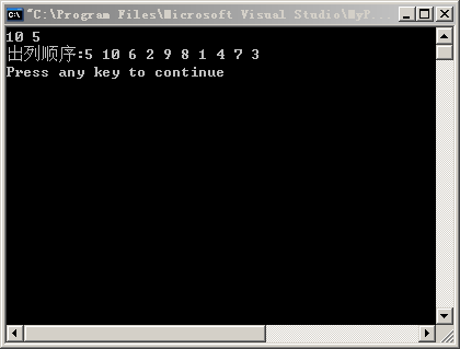 *问题描述:一群猴子,编号是1,2,3 …m,这群猴子(m个)按照1-m的顺序围坐一圈。从第1只开始数,每数到第n个,该猴子就要离开此圈,这样依次下来,最后一只出圈的猴子为大王。输入m和n,输出猴子离开圈子的顺序,从中也可以看出最后为大王是几号猴子。