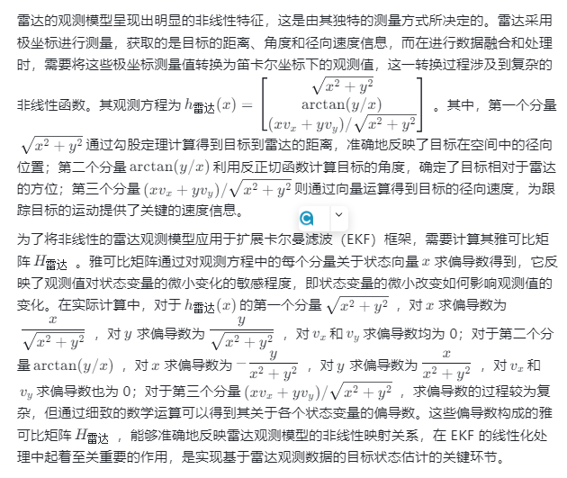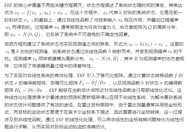 为了充分发挥雷达与激光雷达的优势,扩展卡尔曼滤波(EKF)技术应运而生。EKF 如同一位技艺精湛的融合大师,能够巧妙地将雷达和激光雷达的数据进行融合,实现两者的优势互补。通过 EKF 的处理,系统可以综合利用雷达的速度信息和激光雷达的位置信息,从而更准确地估计目标的运动轨迹。
