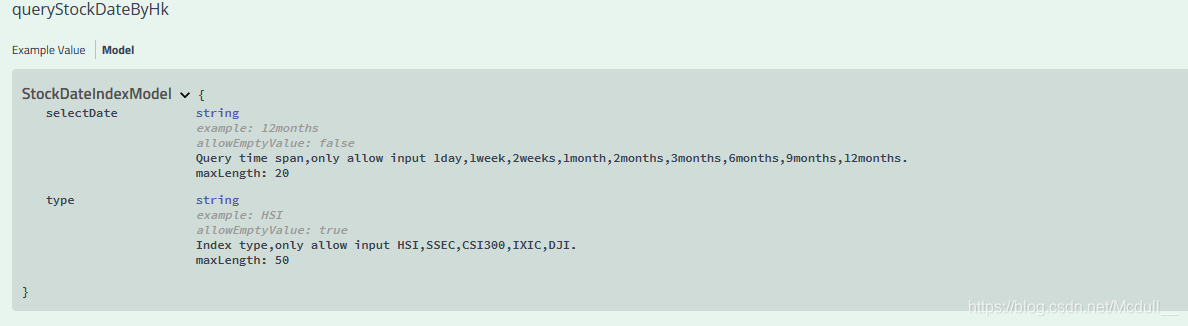 第三个接口: 这个接口比较简单,要求输入两个参数:要展示过去多长时间和股票类型