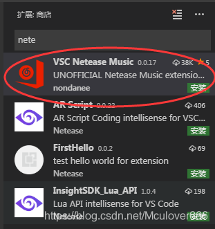 在VS Code的扩展市场搜索nete