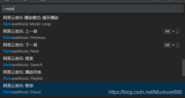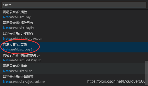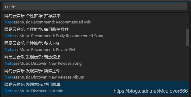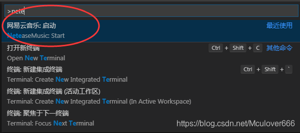 启动网易云音乐之后,在命令面板输入nete