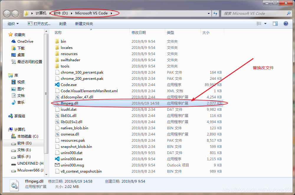 粘贴ffmpeg.dll到VS Code安装目录