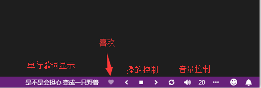 网易云音乐启动后状态栏变为紫色,具体功能如下:
