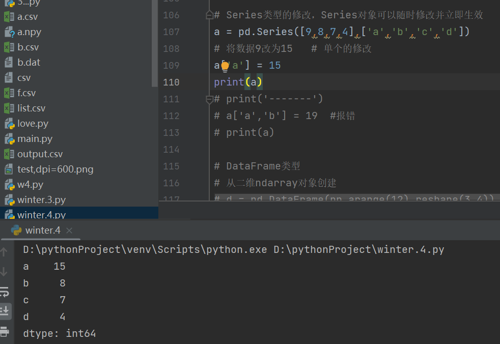 Series类型的修改,Series对象可以随时修改并立即生效