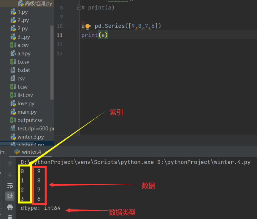 Pd.Series([],[])第一个为:数据 第二个为:索引