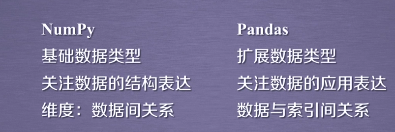 Pandas库是python第三方库,提供高性能易用数据类型和分析工具;基于Numpy实现,常与Numpy和Matplotlib一同使用;两个数据类型:Series,DataFrame。