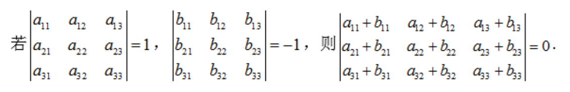 考察《性质5:行列式的某一行(列)为两数的和(差)的形式》 (×)